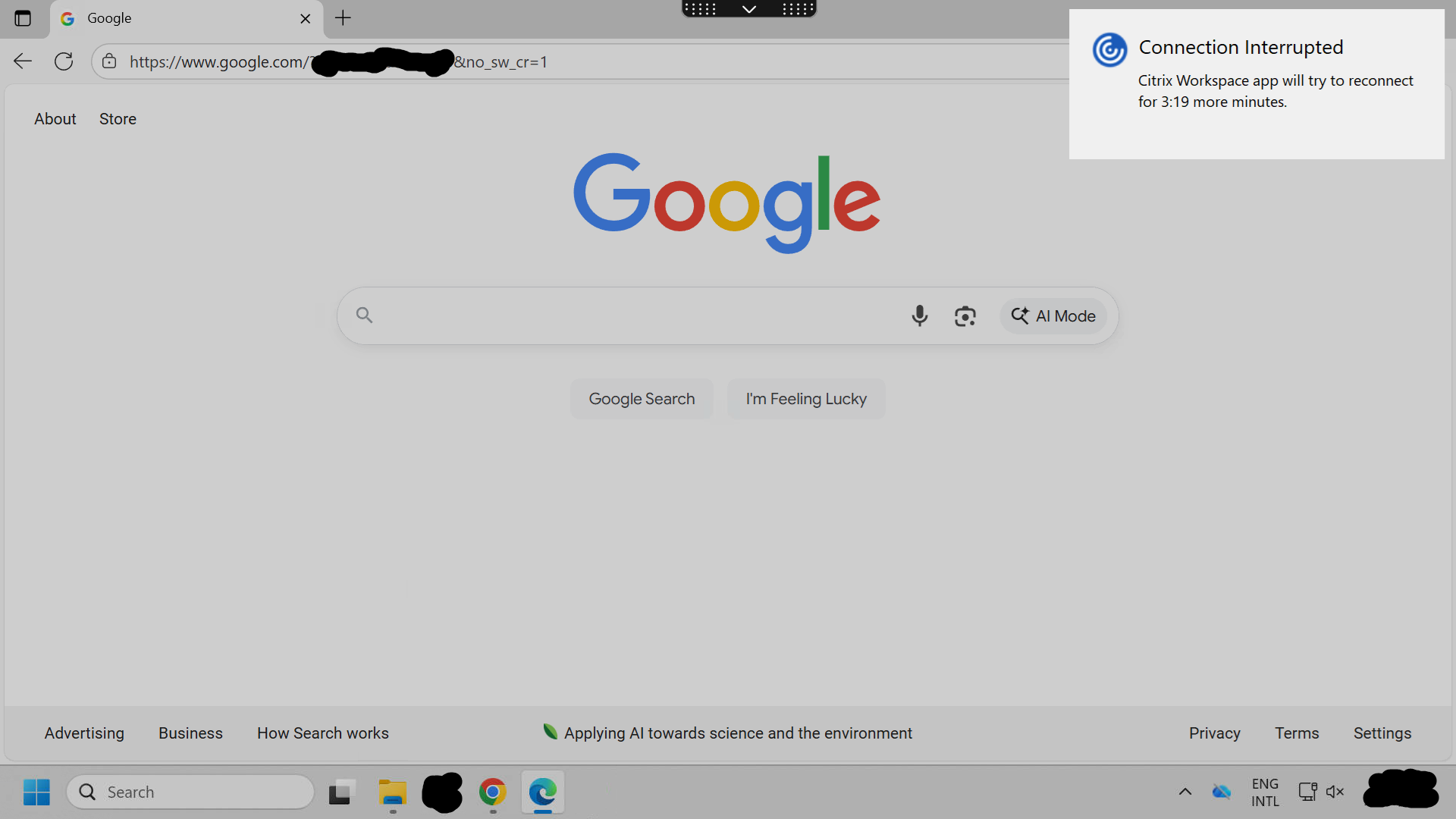 In comparison, when connecting to a remove server desktop with Citrix Workspace, if we lose connection, the Citrix Workspace client app shows the following: