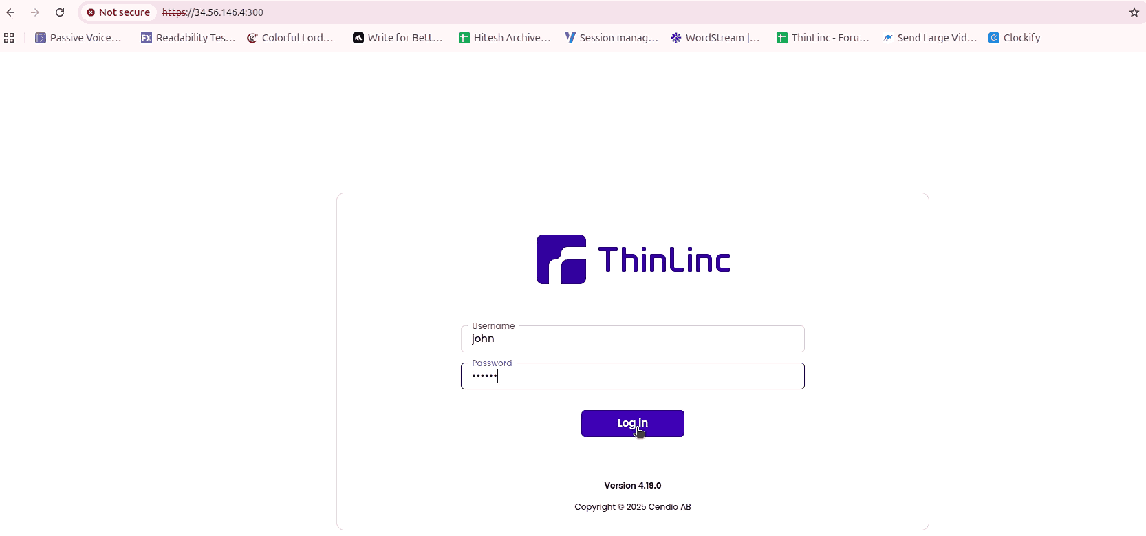 Log in with your admin credentials to access ThinLinc’s web-based management dashboard.